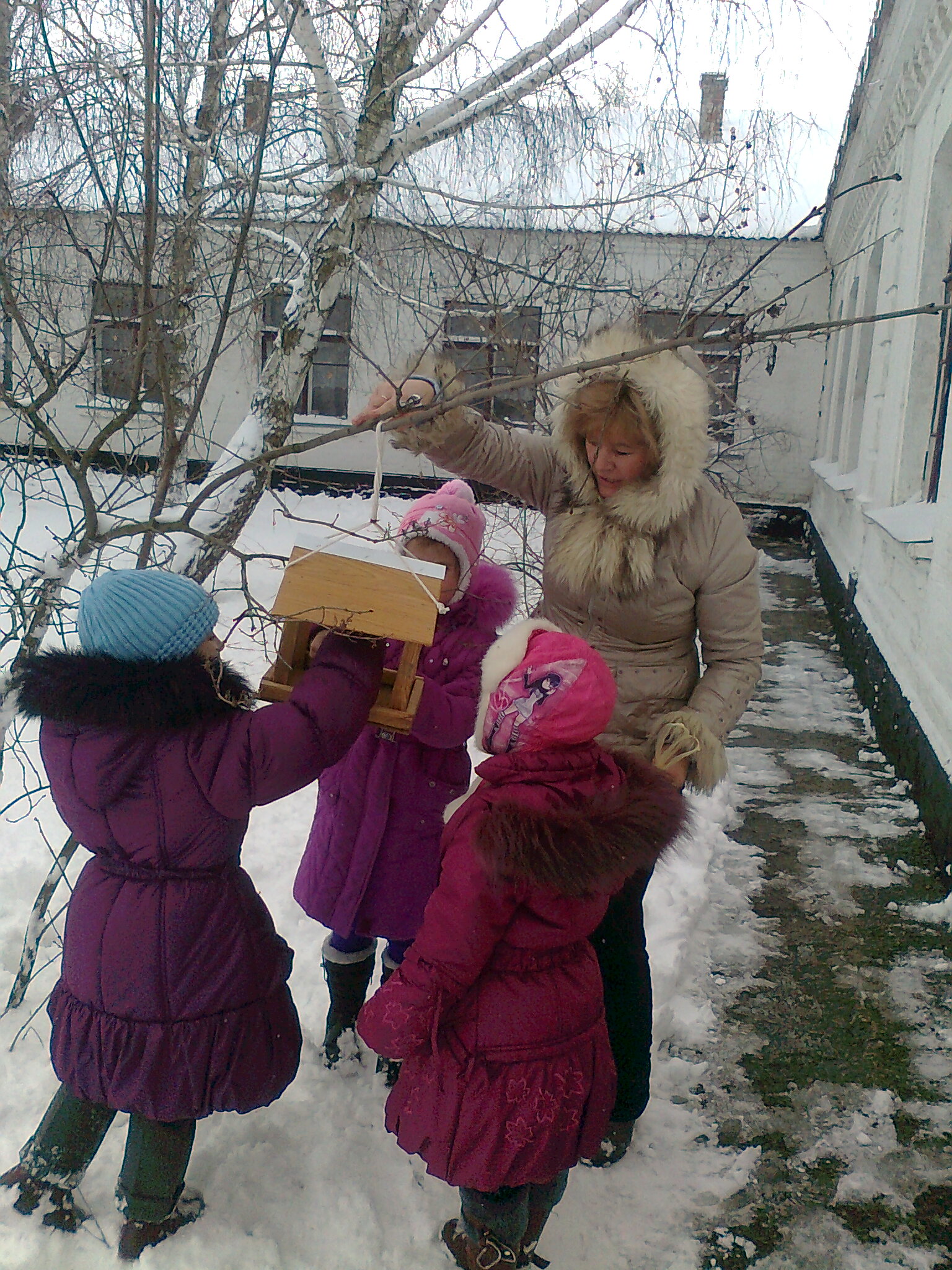 Операція "Як живеться вам, пернаті друзі?" успішно проведена за спияння родини Осадчих, яка змайструвала годівничку для зимуючих птахів. - Завітайте, любі птахи, до нашої годівнички! Вас чекають тут зернята та турботливі хлопчики й дівчата.