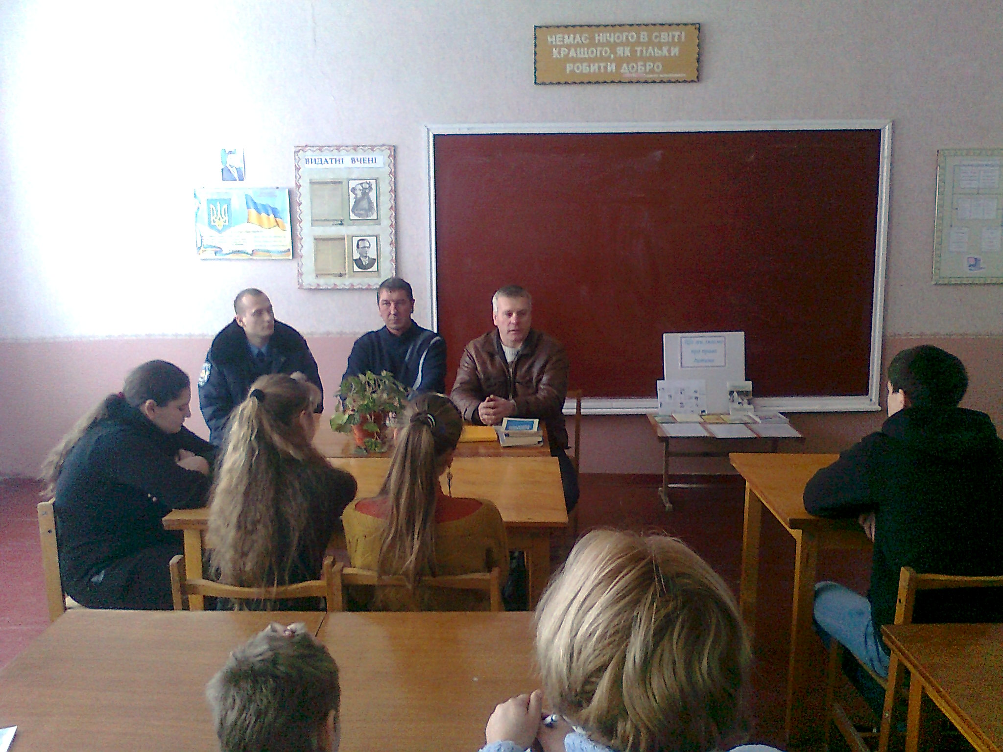 13.12.2012 Зустріч з сільським головою В.В. Шаповалом, працівником Городищенського РВУМВС І.О. Верпетою, фахівцем із соціальної роботи Городищенського РЦСССДМ В.О. Хворостенко з питань прав, обов'язків та відповідальності підлітків. Визначено основні життєві орієнтири, обговорено питання захисту прав дітей.